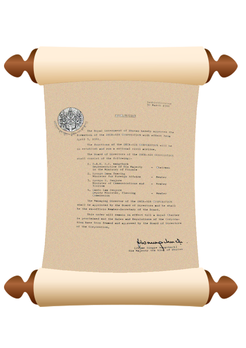 Drukair Corporation Limited, operating as Drukair – Royal Bhutan Airlines, is the national flag carrier of the Kingdom of Bhutan. It was founded on the 5th of April 1981 through a Royal Proclamation issued by His Majesty the Fourth King Jigme Singye Wangchuck.
