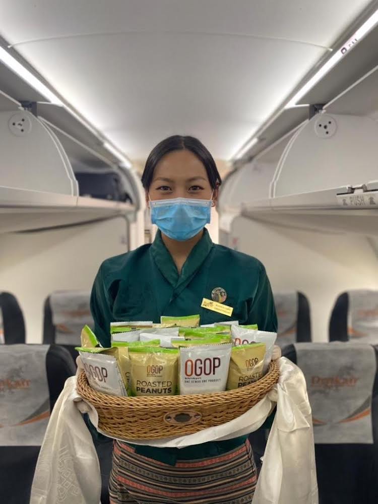 21 February 2022: To mark the most joyous occasion of the 42nd Birth Anniversary of His Majesty The King, Drukair, Royal Bhutan Airlines is pleased to announce the launch of new varieties of organic fresh snacks, Roasted Peanuts & Mix Fruit Candy on board in partnership with the OGOP, One Gewog, One Product programme.