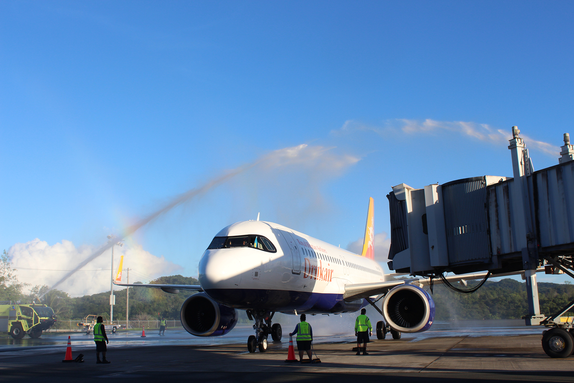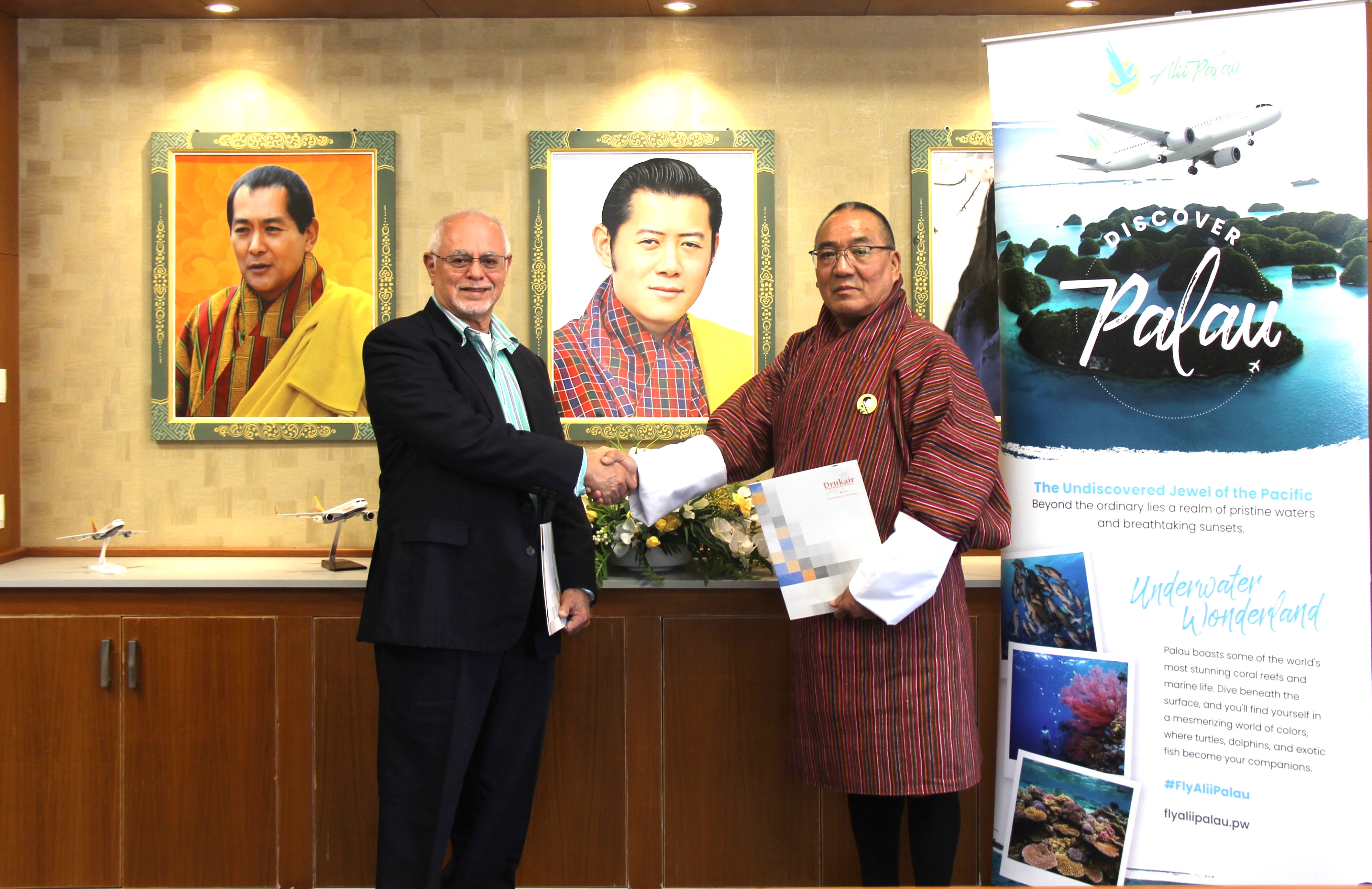 On October 23, 2023, Drukair signed an agreement with Alii Palau Airlines, marking the commencement of operating Singapore-Palau flights on behalf of Alii Palau. Following this, the inaugural flight from Singapore to Palau was operated on November 23, 2023. Guided by the adept command of Yab (Captain) Dhondup Gyaltshen as the Pilot in Command (PIC), the inaugural journey was commemorated with a magnificent water-gun salute upon touchdown at Palau International Airport, signifying a momentous achievement for both Drukair and Alii Palau Airlines. This remarkable journey holds the distinction of being the longest flight ever operated by our pride, the A5-JKW (Airbus A320 Neo), adding a new chapter to its operational history.