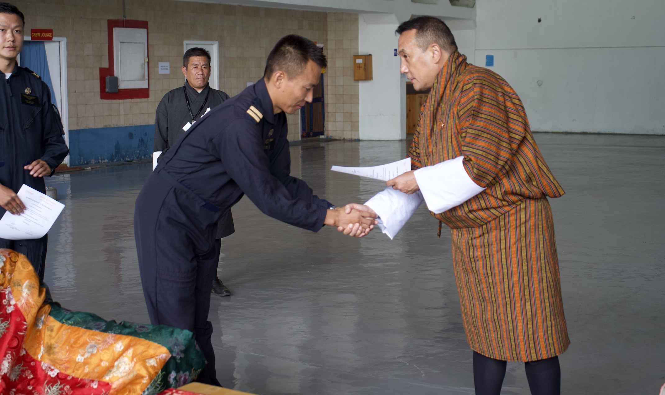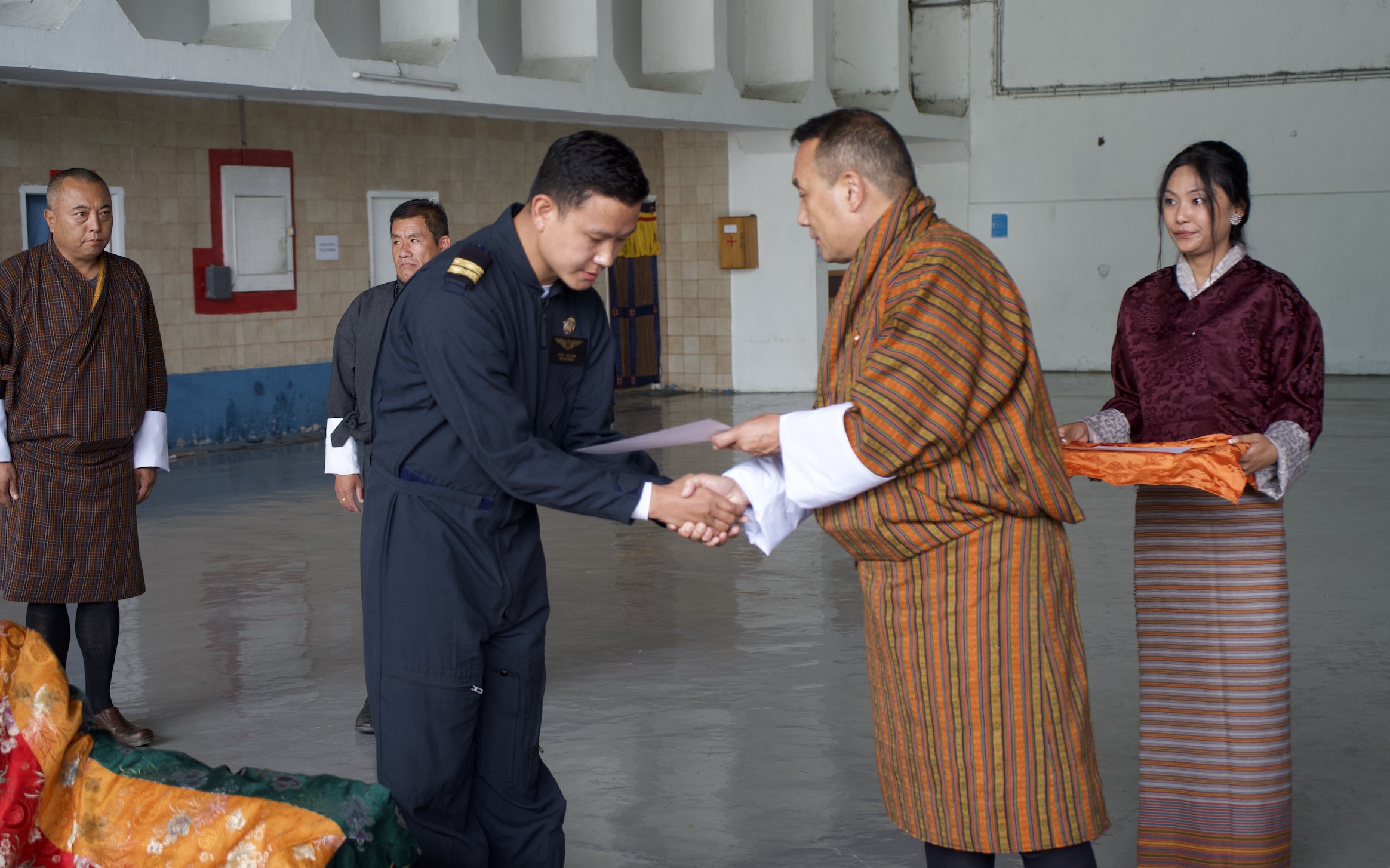 In a Historic moment for Bhutan’s Aviation Industry, Sangay Tshogyal and Ugyen Dorji have achieved a significant milestone as Bhutan’s first Helicopter Jr. Pilots certified to fly H-130 helicopter outside the Paro controlled air space. The achievement ceremony was graced by Yab Dhondup Gyaltshen,Chief Pilot, CEO and other officials of Drukair. This significant acknowledgement of achievement underscores the capacity building in the helicopter industry. Our congratulations once again to Mr.Sangay Tshogyal and Mr.Ugyen Dorji on this remarkable achievement. May their ambition continue to soar to even greater heights both in the skies and in the hearts of all Bhutanese.